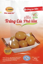 Mô tả: Sử dụng công nghệ hiện đại, ngoại nhập; Sản phẩm Trứng Ăn Liền được chế biến theo quy trình khép kín được kiểm soát nghiêm ngặt về chất lượng từ những quả trứng tươi đầu vào – khâu luộc – bóc vỏ - chế biến – hút chân không – tiệt trùng nhiệt độ cao.